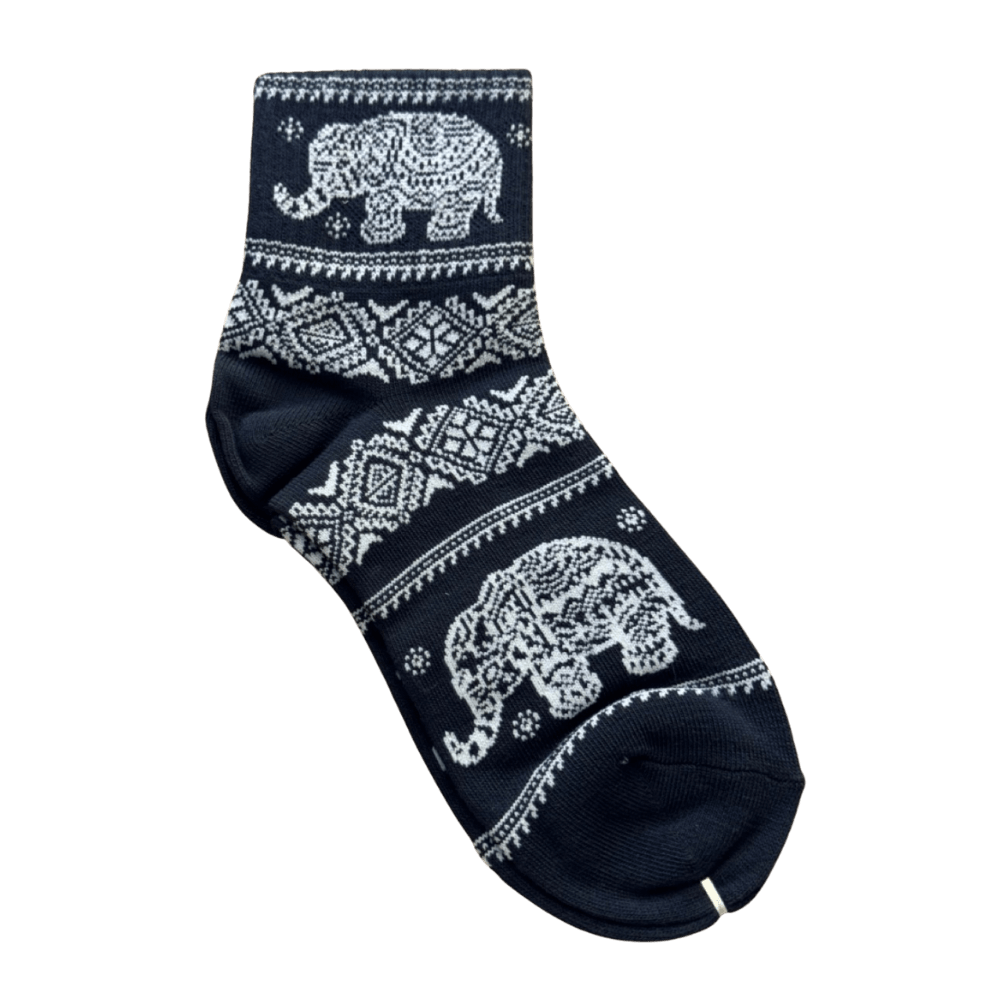 Plongez dans l’artisanat thaïlandais avec ces chaussettes à motifs éléphant. Inspirées des textiles traditionnels du Nord de la Thaïlande, elles sont à la fois élégantes, symboliques et confortables. Disponibles en plusieurs coloris sobres et faciles à assortir : blanc, noir, gris, bordeaux.