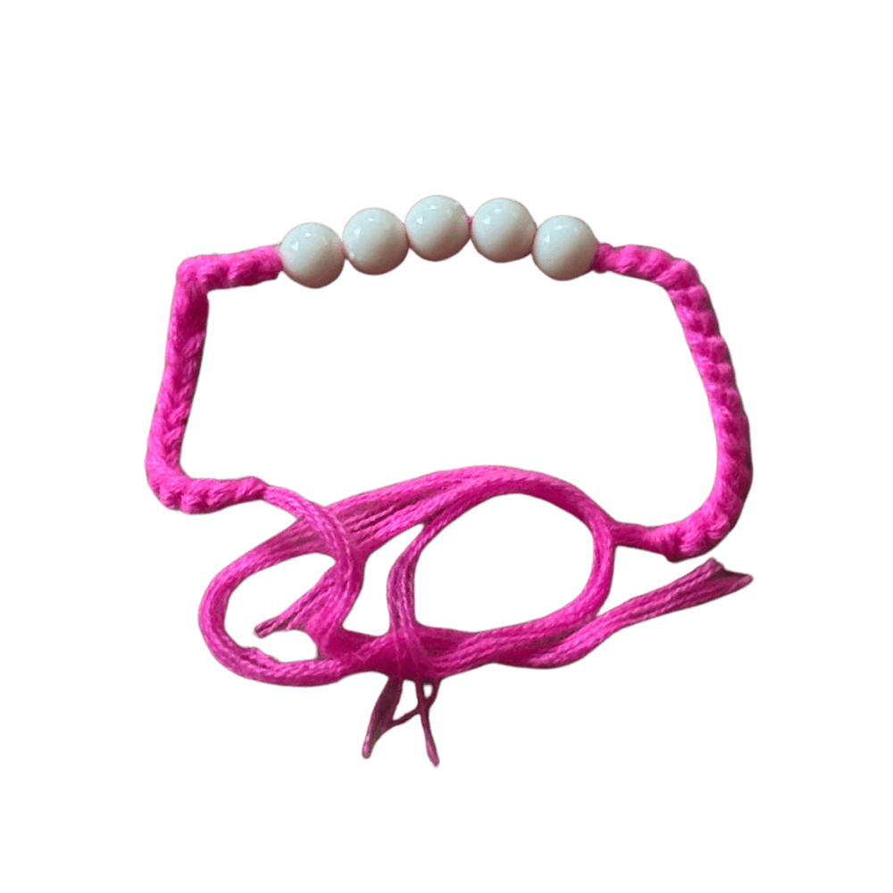 Ces bracelets traditionnels, appelés Sai Sin en thaï, sont confectionnés à la main avec des ficelles de couleur et cinq perles blanches, chacune portant une intention particulière : succès, prospérité, santé, compassion et progressivité.